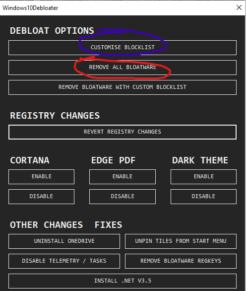 Once the program opens, you can either customize the features you want to disable by clicking CUSTOMIZE BLOCKLIST (Blue)